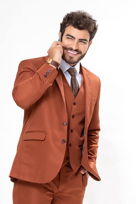 Terno terracota, podendo ser usado com ou sem colete colete.