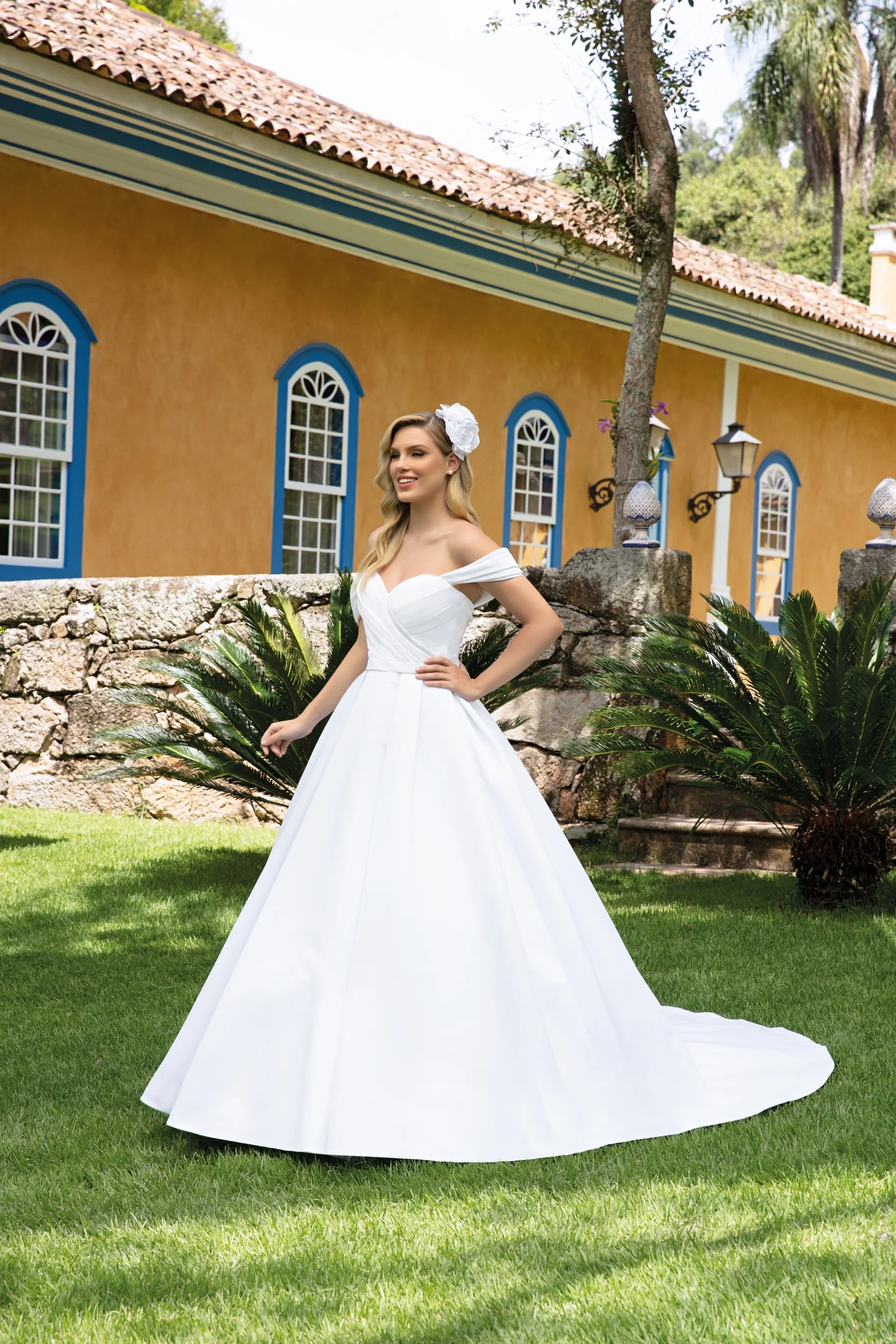 Vestido minimalista em cetim com detalhes drapeados no corpo.
