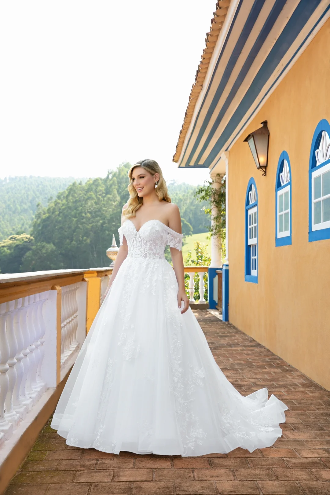 Alças caídas com detalhe bordado e aplicações de renda.