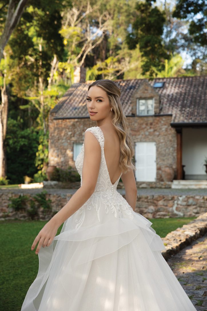 Lindo diferencial de babados com crinol na saia costas, dando volume e leveza;